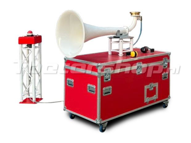 Door de grootte van de hoorn en het membraanhuis kan het geluidsniveau oplopen tot 143 dB (op 1 meter afstand).