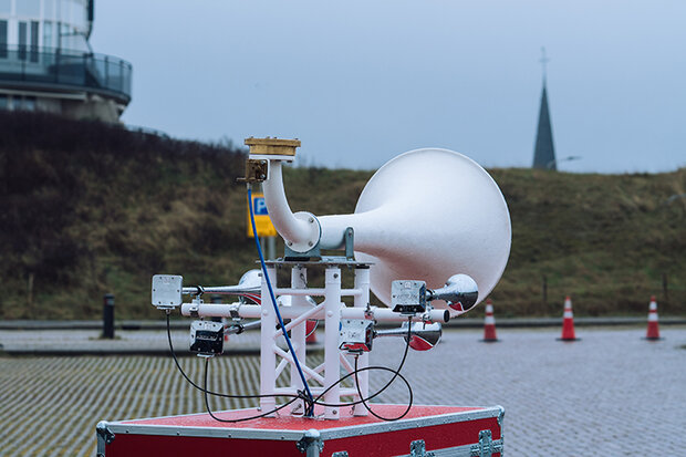 De lage toon van de hoorn (110 Hz) zorgt ervoor dat het geluid ver draagt.